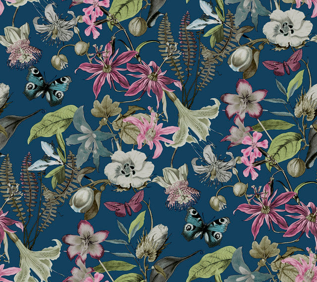 York Wallcoverings BL1723 Navy Butterfly House Wallpaper
