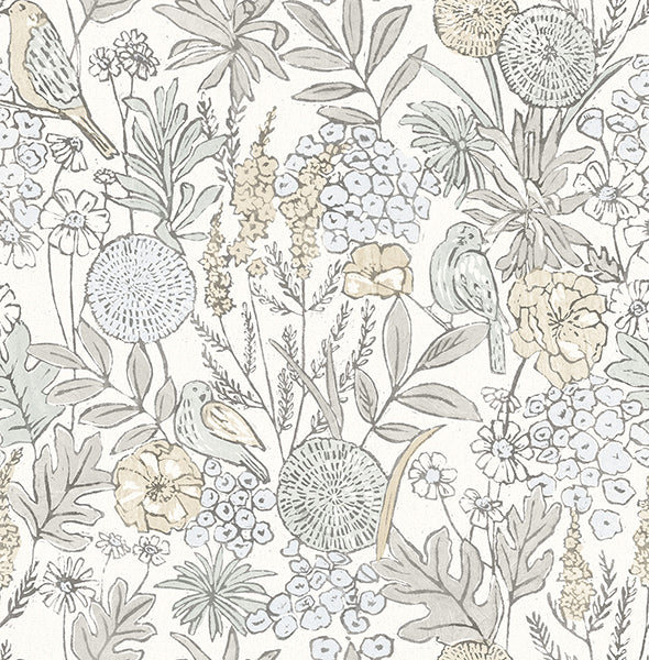 Chesapeake 4148-27411 Goldfinch Neutral Birds and Blooms Wallpaper