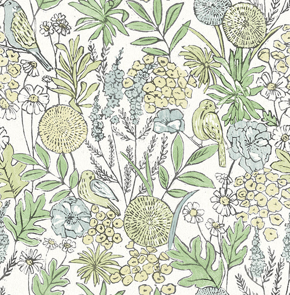 Chesapeake 4148-27412 Goldfinch Green Birds and Blooms Wallpaper