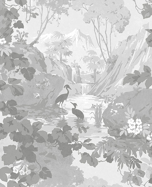Brewster Home Fashions M1677 Eden Crane Lagoon Gray Wallpaper