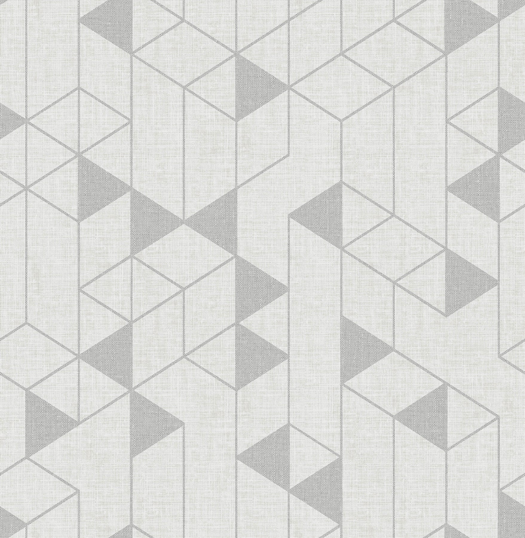 Cool neutral hues bring an elevated touch to this timeless geometric wallpaper. The grid of solid and outlined silver-grey shapes receive extra dimension from the light grey faux linen backdrop.