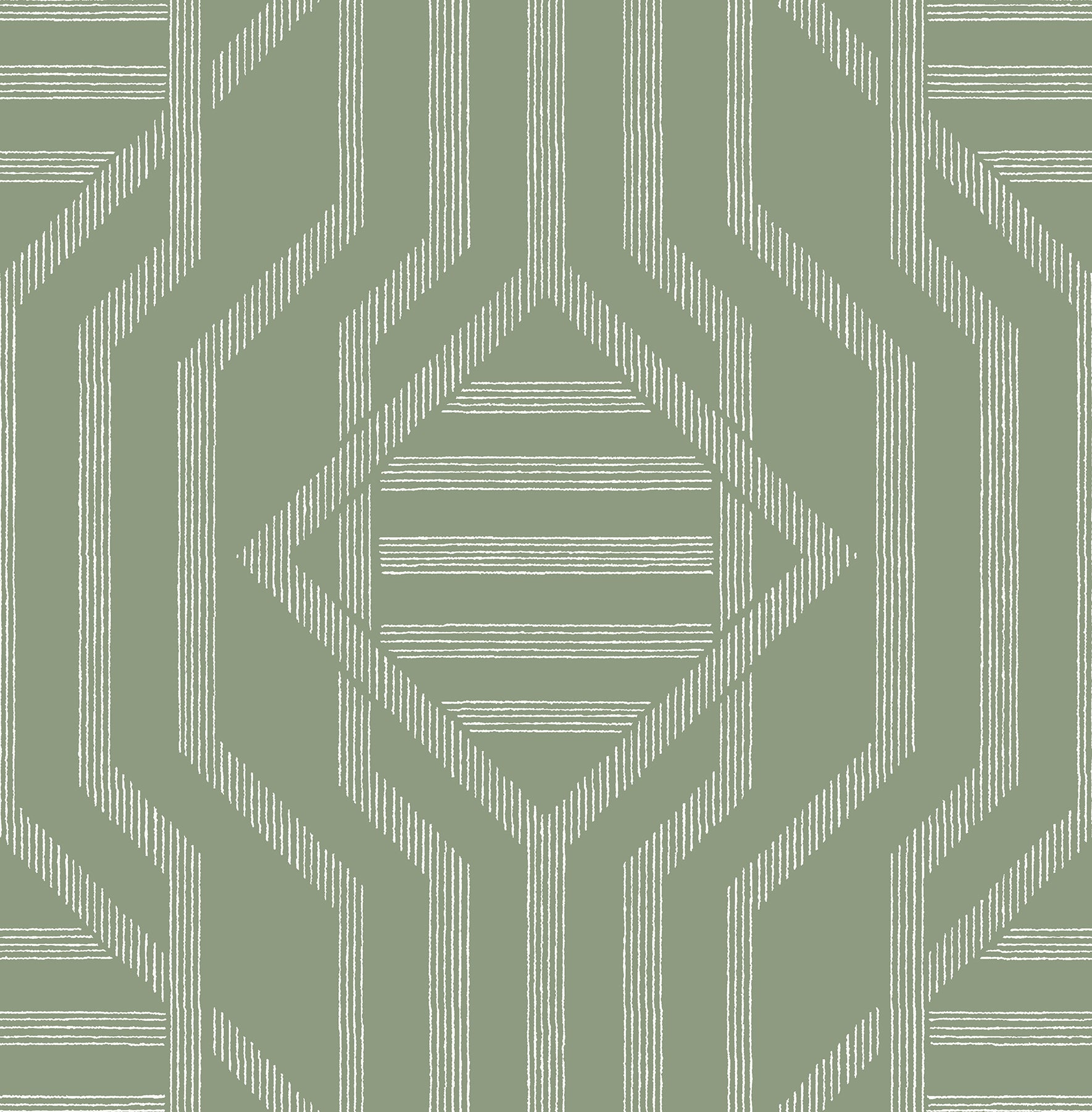 The impressive scale of this column-esque design is playfully contrasted by the hand-drawn lines that shape its geometric forms. Seen here with creamy-white linework against cool sage. Essex is an unpasted, non woven wallpaper measuring 20.5 inches wide by 33 feet long, covering approximately 56.4 square feet per roll.